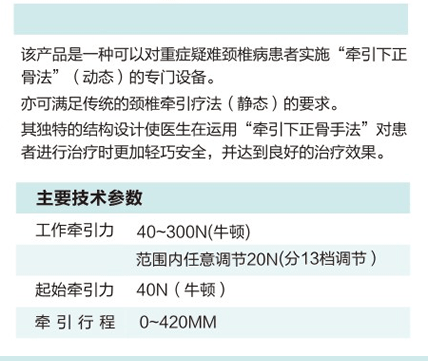 YHZ-12D型頸腰椎牽引床,由微電腦控制,輕觸鍵輸入程序,可根據(jù)患者病情連續(xù)、間歇、往返、脈沖牽引,具有牽引力自動(dòng)補(bǔ)償,自動(dòng)計(jì)時(shí)等提示功能。