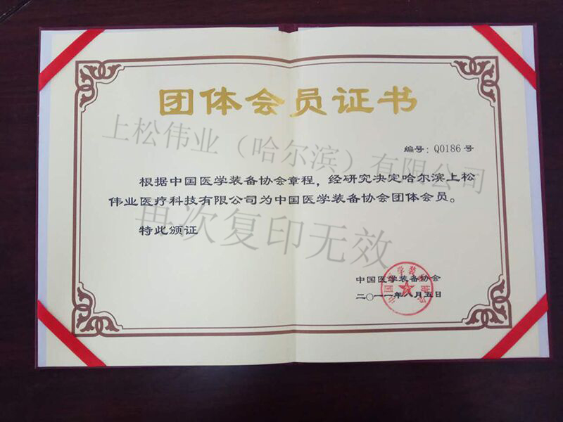 中國醫(yī)學(xué)裝備協(xié)會(huì)團(tuán)體會(huì)員證書
