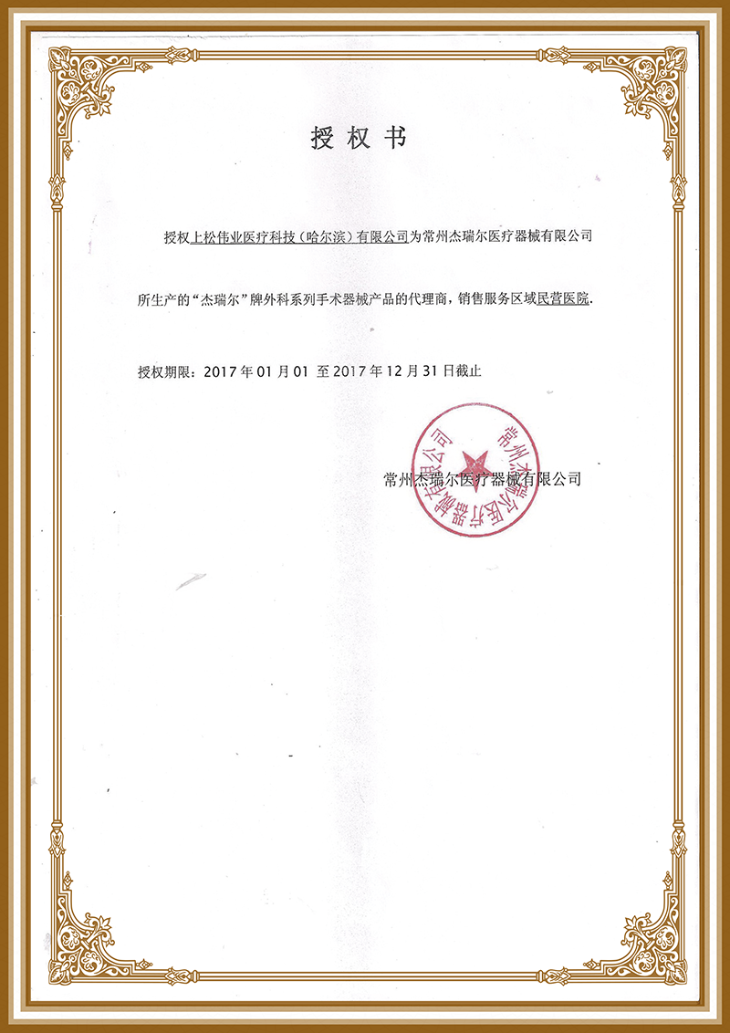 常州杰瑞爾醫(yī)療器械有限公司授權(quán)